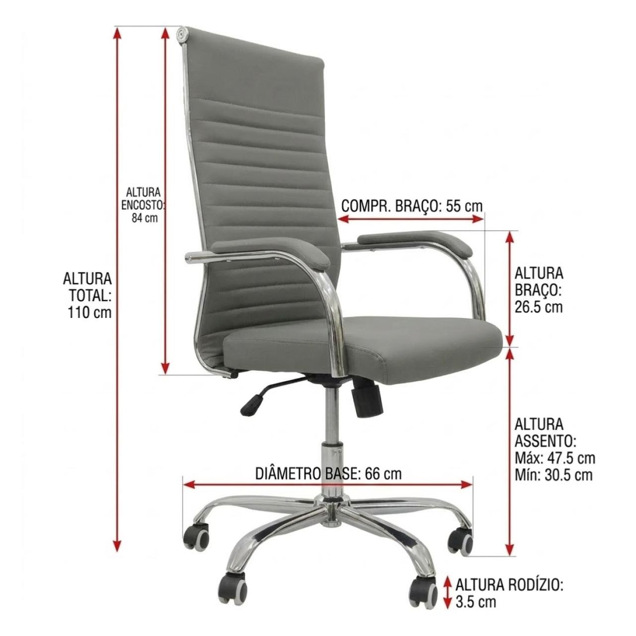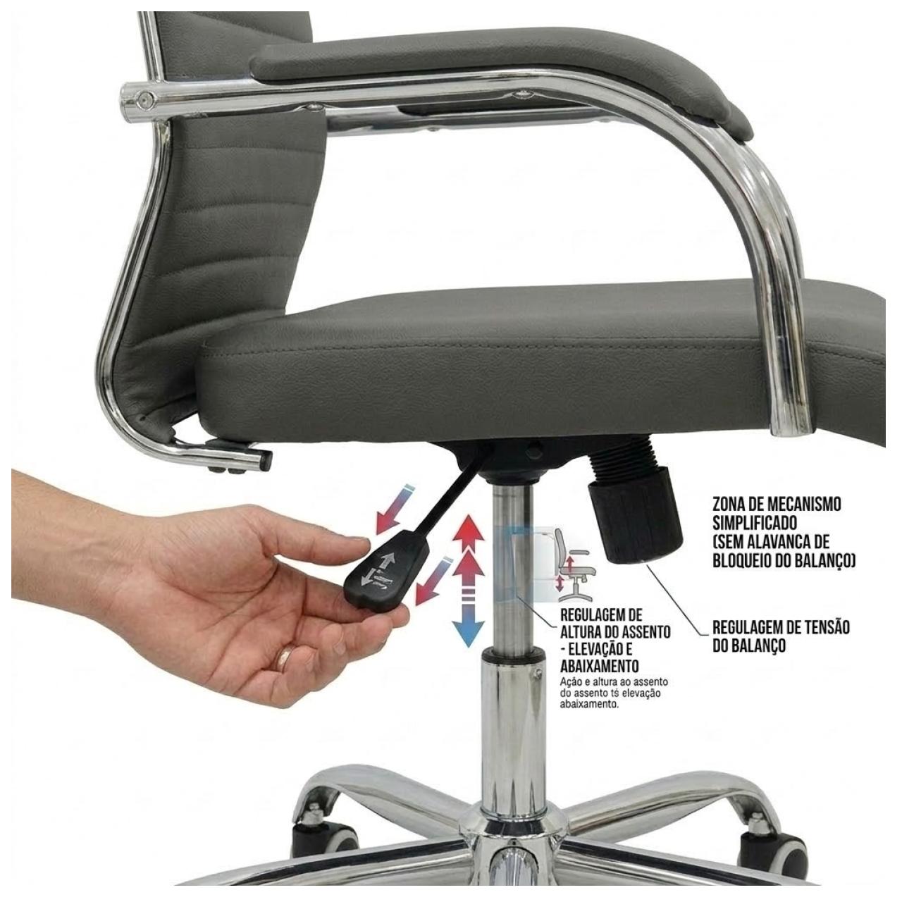Estrutura Reforçada: Base e braços em metal cromado, garantindo maior resistência e vida útil ao produto.