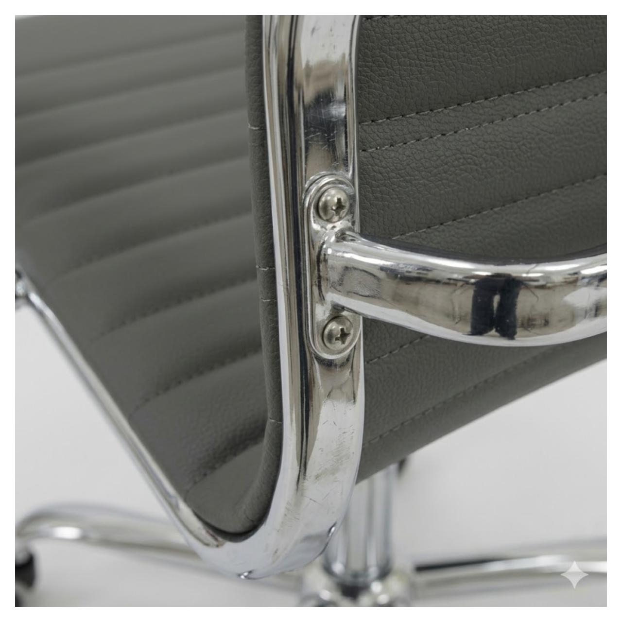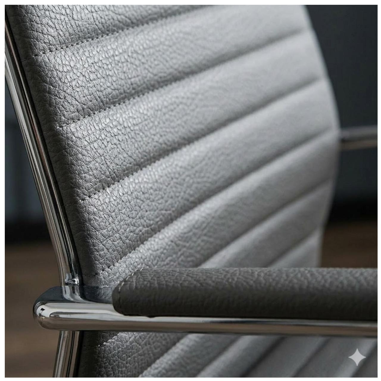 Eleve o padrão do seu home office ou ambiente corporativo com a Cadeira de Escritório Presidente Slim. Projetada para quem busca o equilíbrio perfeito entre design moderno e conforto prolongado, esta cadeira combina acabamento premium em metal cromado com revestimento em material sintético de alta durabilidade.