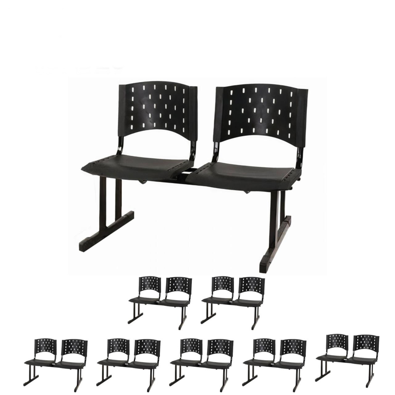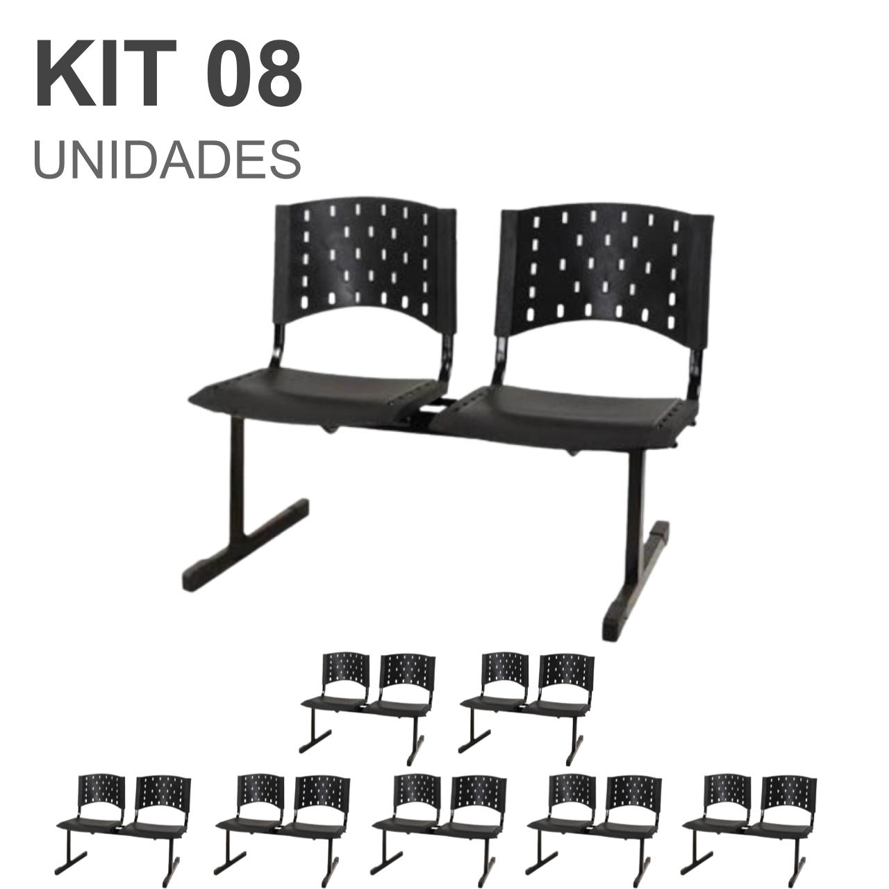 Kit 08 Cadeiras Longarinas PLÁSTICAS 02 Lugares – Cor PRETA – 23024
