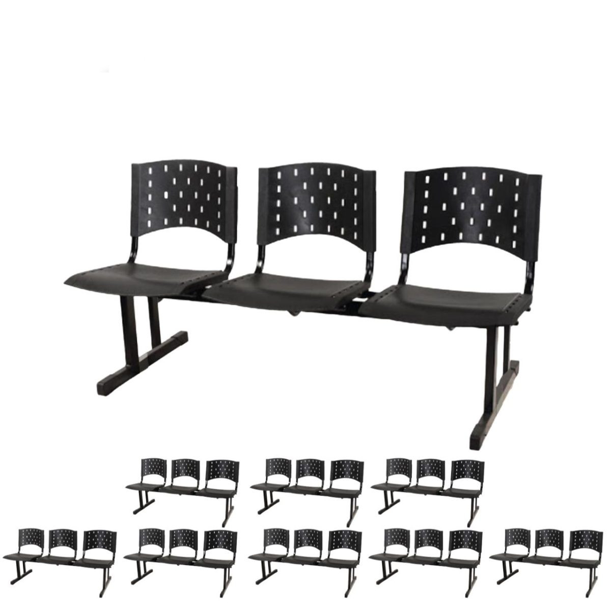 Kit 09 longarinas PLÁSTICAS 03 Lugares – Cor PRETO 23007