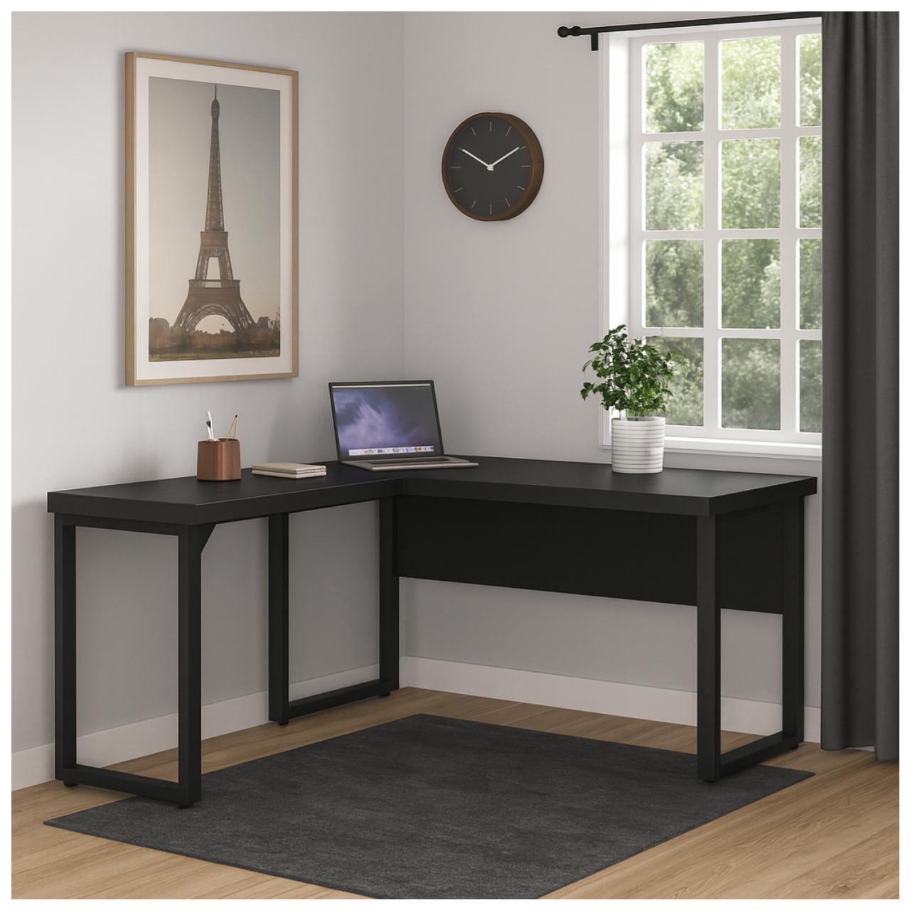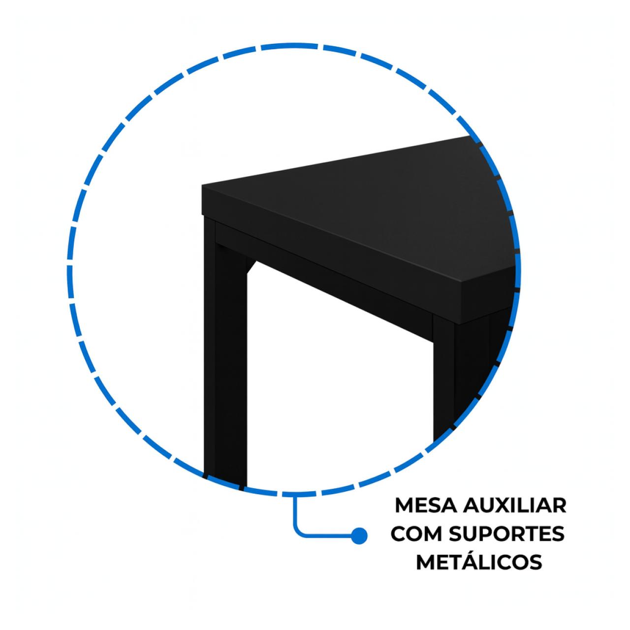 Mesa em L PÉ QUADRO (Mesa 1,70m + Mesa Auxiliar) – C/ Gavetas – PRETO / PRETO – 26211