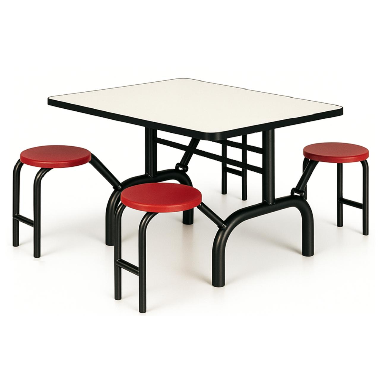 Mesa para Refeitório ESCAMOTEÁVEL 04 Lugares MDP Branco de 25 mm – Assento VERMELHO – 50402