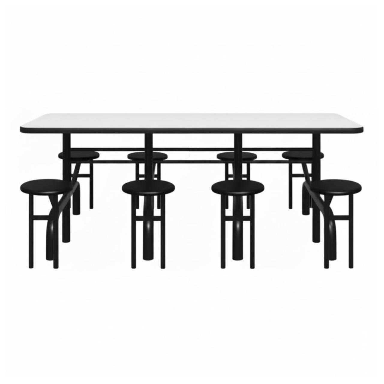 Mesa para Refeitório ESCAMOTEÁVEL 08 Lugares MDP Branco de 25 mm – Assento PRETO – 50804