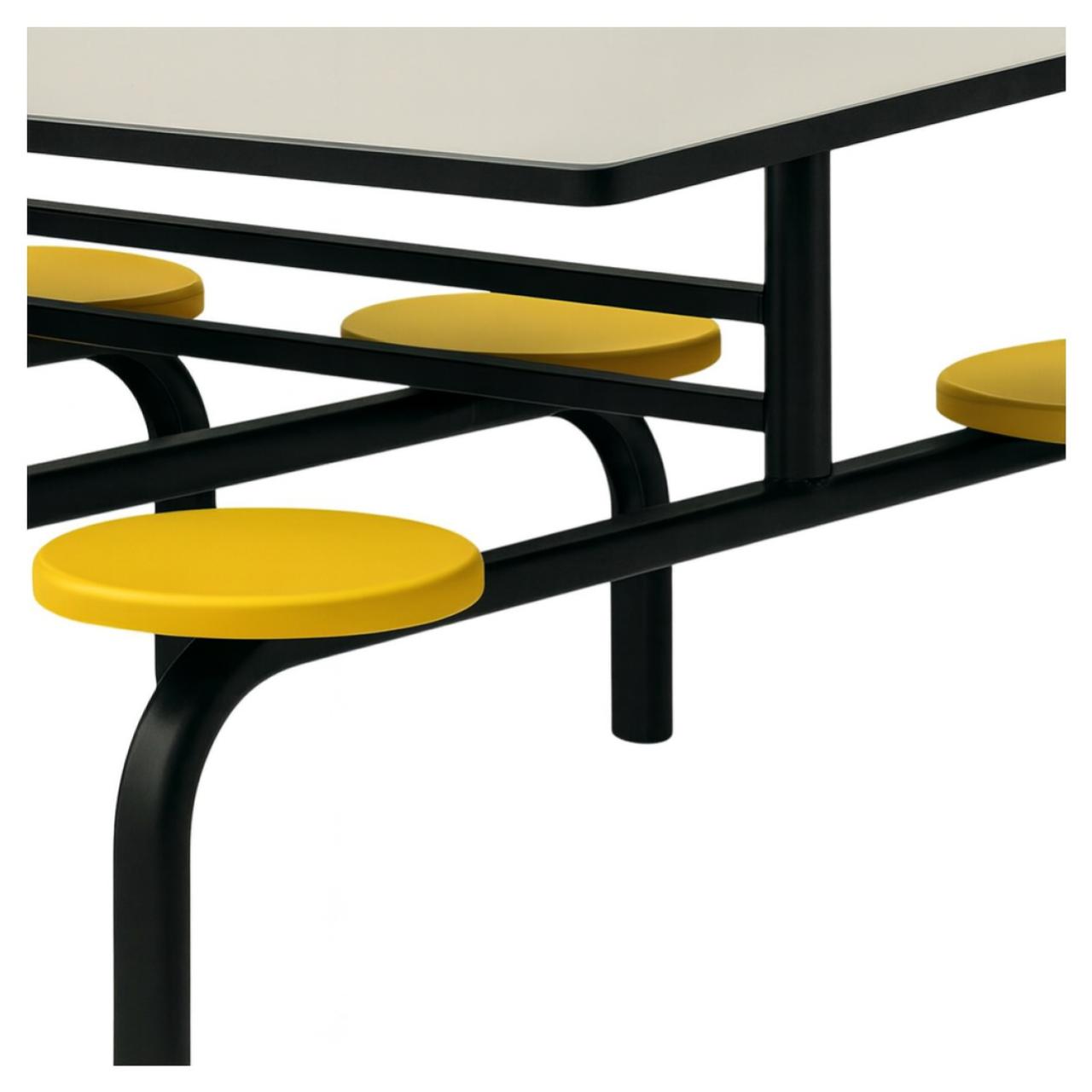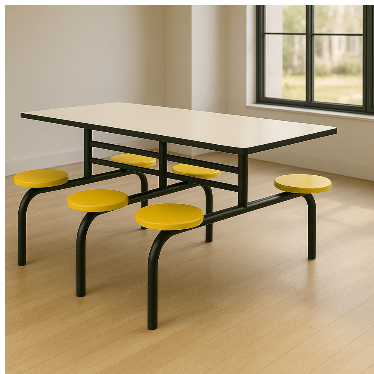 Mesa para Refeitório FIXA 6 Lugares MDP Branco de 25 mm – Assento AMARELO – 50203