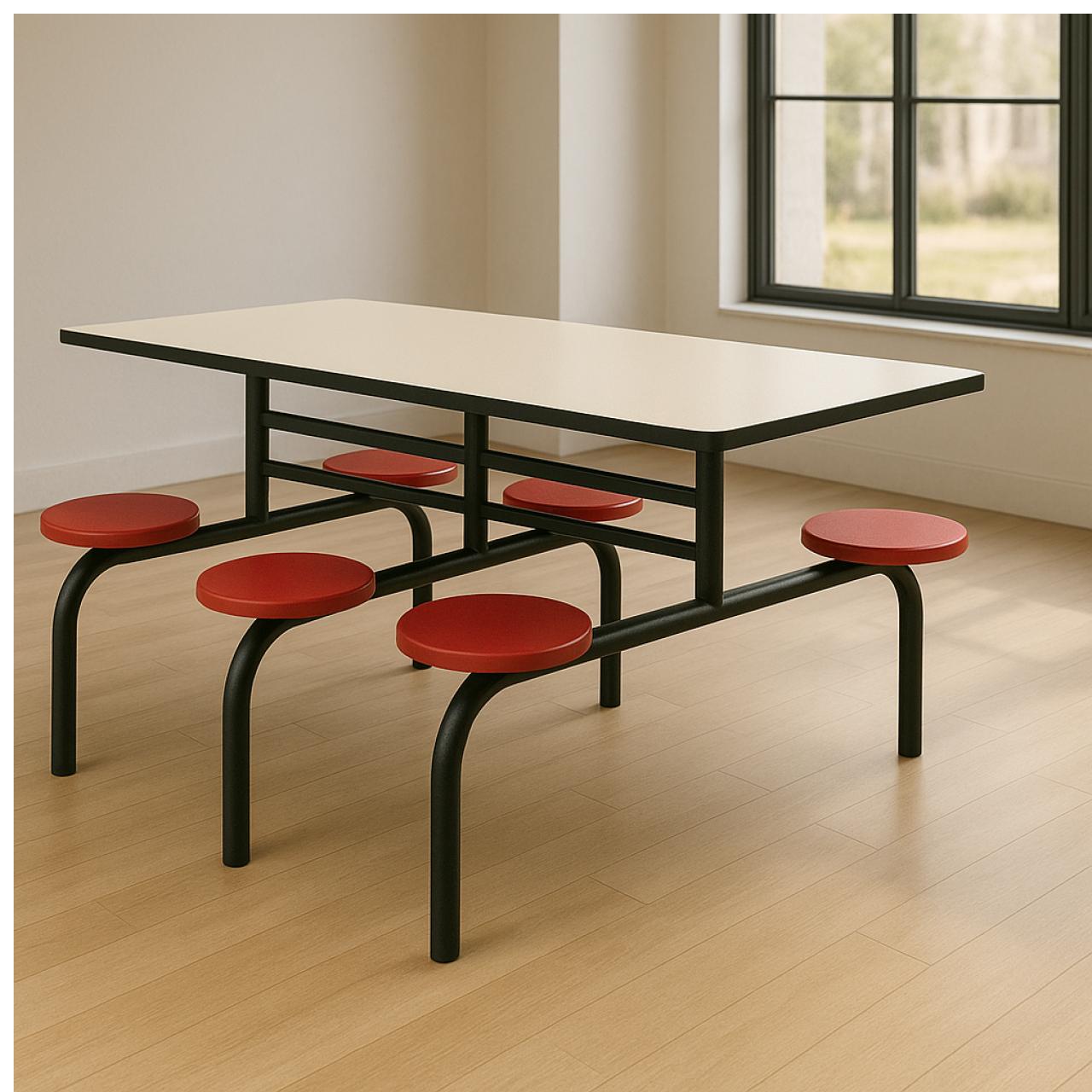 Mesa para Refeitório FIXA 6 Lugares MDP Branco de 25 mm – Assento VERMELHO – 50204
