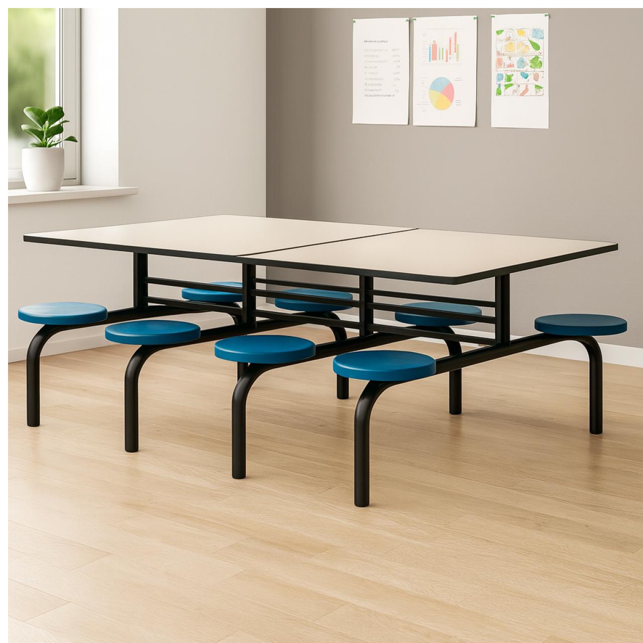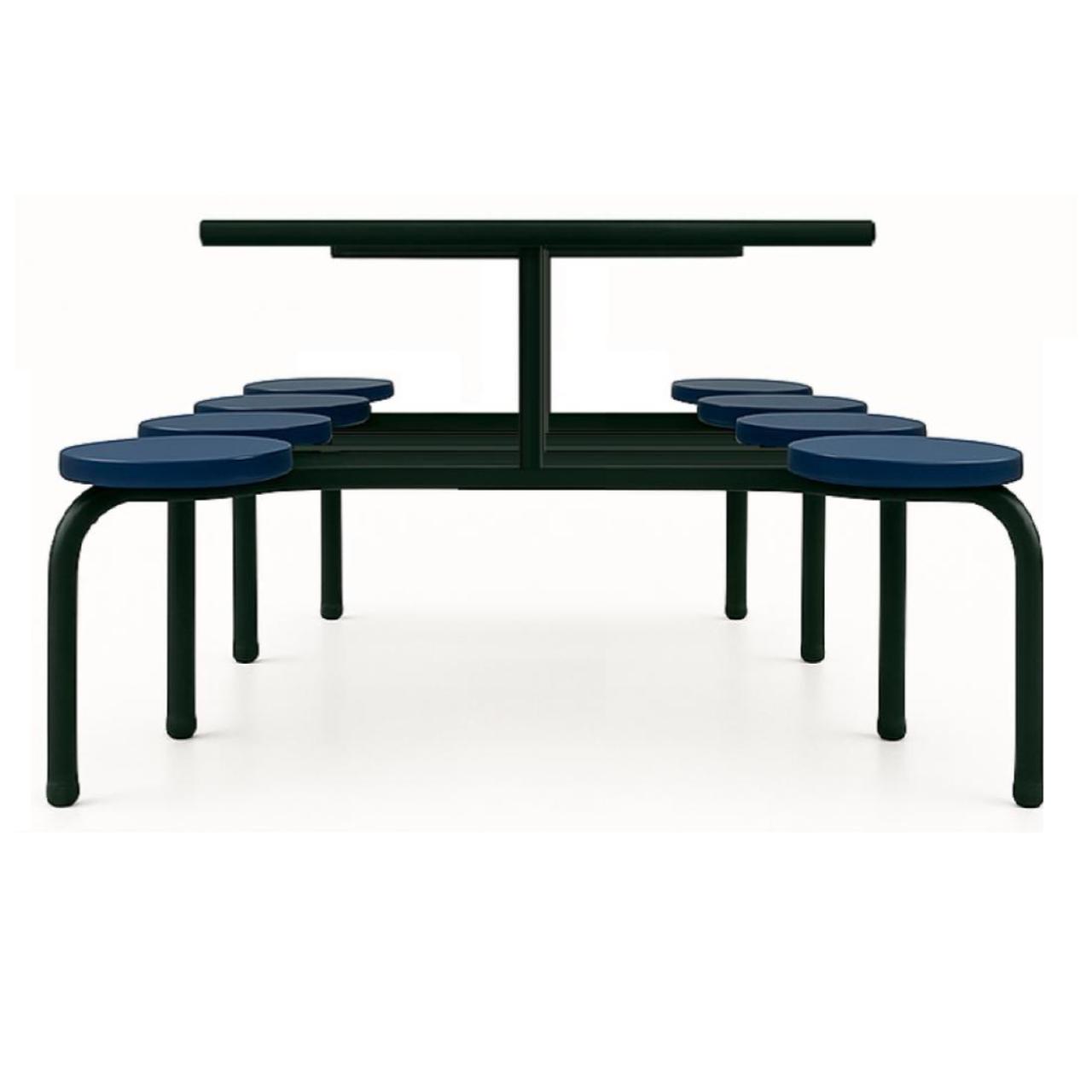 Mesa coletiva de refeitório com bancos fixos integrados, ideal para uso em ambientes institucionais, industriais, escolares e corporativos. Estrutura metálica reforçada e assentos individuais acoplados garantem durabilidade, praticidade e organização do espaço.